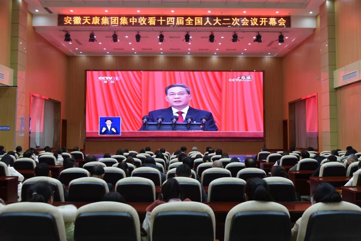 3月5日上午9时,集团党委组织党委班子成员、办公人员、员工代表在一楼会议中心集中收看十四届全国人大二次会议开幕会现场直播,认真聆听李强总理代表国务院所做的政府工作报告。各党支部、制造部、分公司的党员职工采取“集中+分散”“线上+线下”“部室+班组”多种形式通过电视、电脑、手机客户端等收听收看开幕会直播。