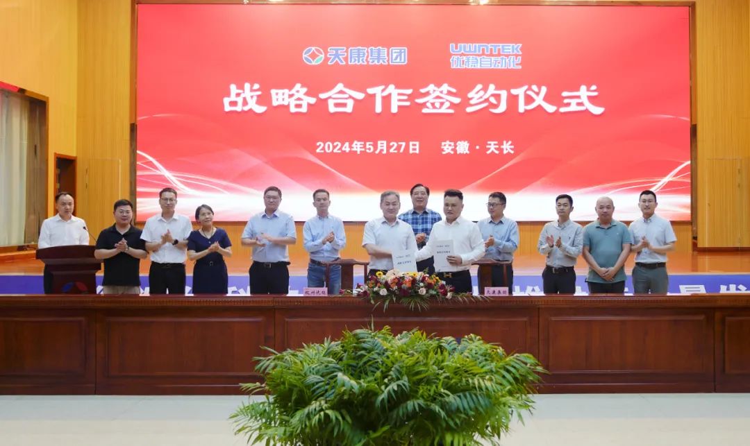 5月27日,安徽天康集团与杭州优稳自动化系统有限公司战略合作签约仪式在天康集团一楼会议中心隆重举行,天长市副市长唐晓菲及天长市经信局、科技局等职能部门相关领导应邀出席仪式。