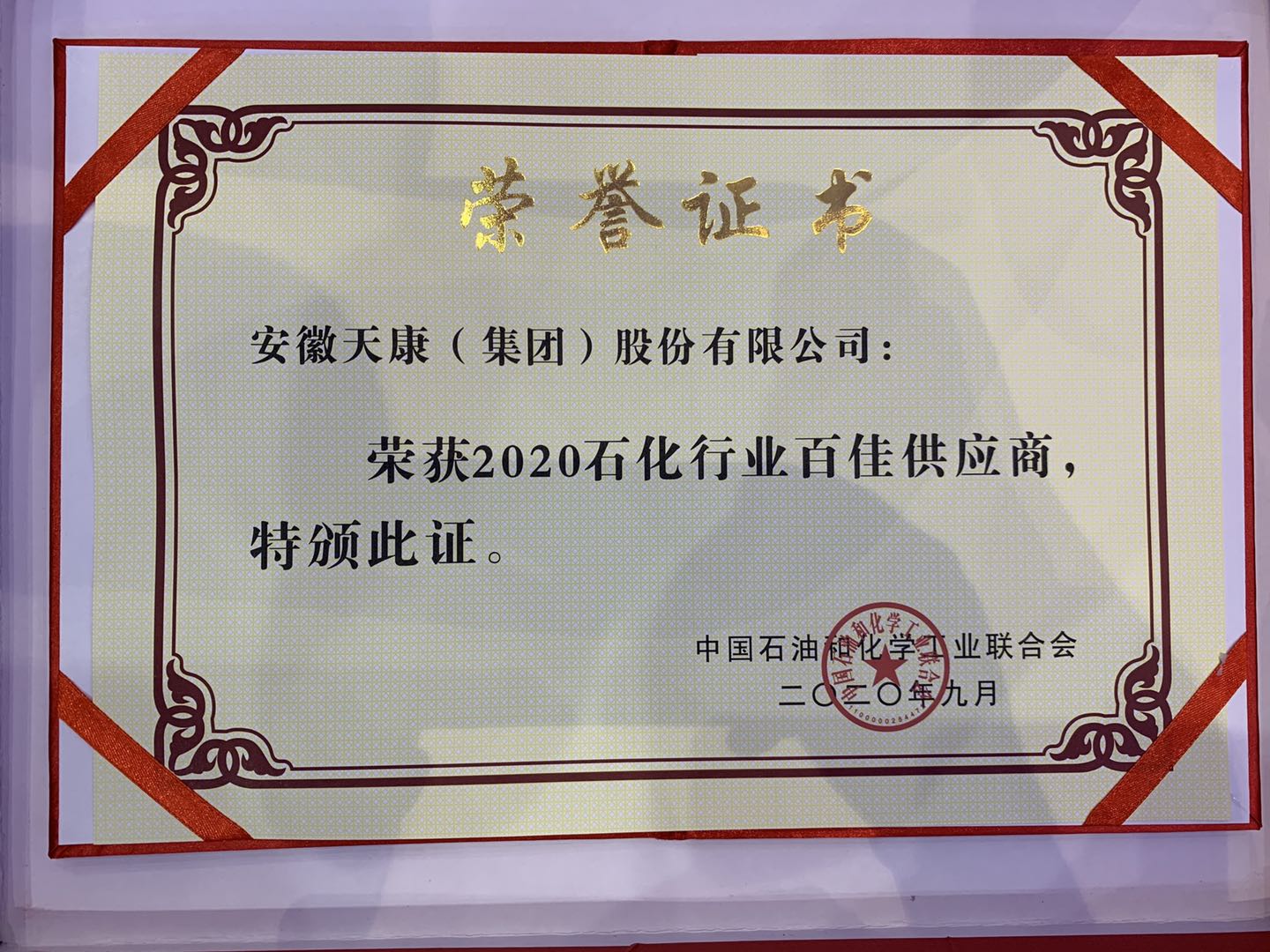 安徽天康集团荣获中国石化行业百佳供应商