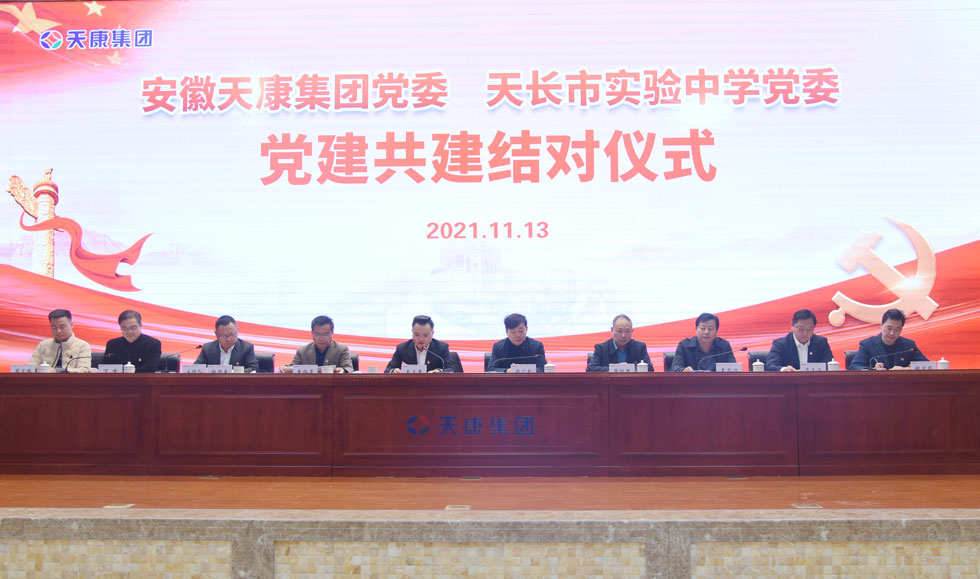 为实施校企党建共建共享,携手共赢。11月13日上午,安徽天康集团党委与天长市实验中学党委在集团会议中心隆重举行“党建共建结对”仪式,拉开了校企之间党建共建的帷幕,齐心构建“资源共享、优势互补、互相促进、共同提高”的党建工作新格局。安徽天康集团党委副书记、总经理毛文章,天长市实验中学党委副书记、校长冯广礼出席仪式。安徽天康集团党委委员、副总经理张祖国,党委委员、副总经理柏保东,党委委员、纪委书记、工会主席于正江,天长市实验中学党委委员、副校长袁福泉,党委委员、副校长王月江,党委委员、副校长丁峰,党委委员、工会主席、教科室主任褚宏彪,党委委员、团委书记周宏林及双方主要部门负责同志,集团党委各支委委员、党员代表参加了仪式。柏保东主持仪式。