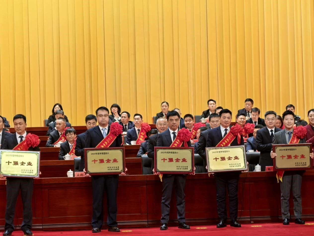 2月26日,天长市隆重举行全市工业经济表彰暨“双招双引”推进大会。会上,市委、市政府对2025年度工业发展先进单位进行表彰。安徽天康集团凭借卓越的综合实力与突出的外贸业绩,一举斩获“综合实力十强企业”及“2025年度外贸进出口十强企业”两项重磅荣誉。集团党委书记、董事长赵宽,副总经理宋春雨受邀出席大会并领奖。