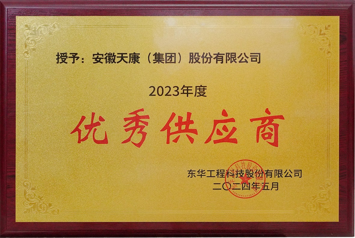 此次安徽天康集团获“优秀供应商”殊荣,不仅展示了东华科技对安徽天康集团的认可与嘉奖,也彰显了安徽天康集团在行业内的领先地位和卓越贡献。