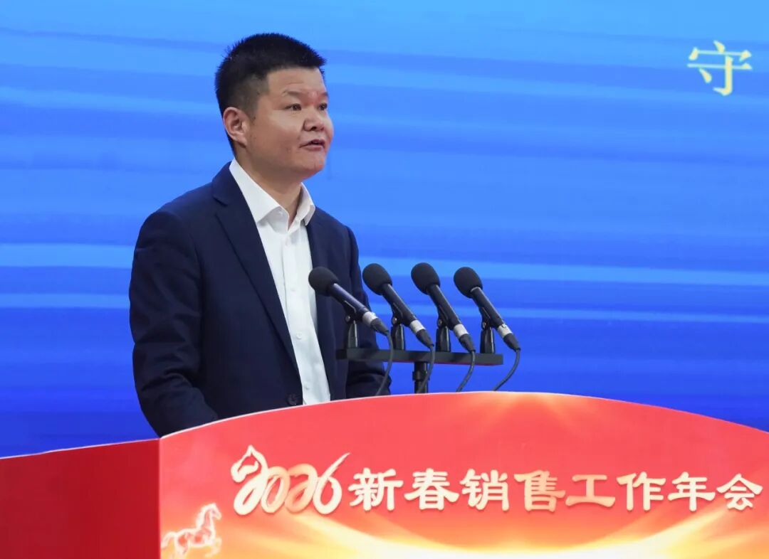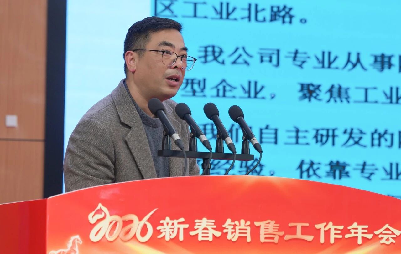 集团党委副书记、总经理、国家企业技术中心主任毛文章在会上发表重要讲话。他首先表示受集团董事长委托,代表集团董事会向长期奋战在市场一线的全体销售经理致以崇高敬意和衷心感谢,并向与会嘉宾表示热烈欢迎。毛总指出,2025年是极具挑战的一年,面对复杂多变的宏观环境和行业周期波动,全体天康人以坚韧不拔的意志和开拓进取的精神,圆满完成了年度目标任务,为集团稳中求进、变中开新局注入了强大动能。毛总强调,2026年是集团迈向“百年天康、千亿产业”目标的关键之年。全体销售经理要以“闯”的精神、“创”的劲头、“干”的作风,争做市场开拓的“主力军”和价值创造的“先锋队”。一是要锤炼“洞察先机、制胜未来”的市场本领。要密切关注宏观经济政策导向、行业技术演进路径、竞争对手策略动态以及客户需求迭代升级。特别是要聚焦“双碳”目标下的新能源、新基建领域,智能制造转型升级带来的新需求,深入研究产业链、供应链变化,提升市场分析的深度与前瞻性,从“捕捉机会”向“创造机会”升级。二是要锻造“技术赋能、方案致胜”的综合能力。要持续深化对集团产品技术,尤其是智能化、集成化、绿色化新产品、新解决方案的理解与掌握。要善于将产品性能转化为客户价值,能够针对客户痛点,提供从技术咨询、方案设计到服务支持的一体化解决方案,推动销售模式从“产品推销”向“价值营销”、“方案营销”深刻转型。三是要坚守“合规经营、诚信致远”的职业操守。要深刻理解、严格遵守集团的各项销售政策、价格体系、信用管理制度、费用报销规定等,要坚决杜绝任何商业贿赂、虚假宣传、诋毁同行等损害集团商誉的行为。共同维护一个阳光、健康、可持续的市场生态,做让客户信任、让同行尊重、让社会认可的销售经理。对于各职能部门,毛总要求牢固树立“一切为了销售、一切服务销售、一切保障销售”的理念,构建高效敏捷的协同体系,锻造专业精准的服务能力,健全奖惩分明的考核机制,真正成为销售一线的坚强后盾和有力支撑。毛总号召全体天康人要以“龙马精神”昂扬斗志,以“马不停蹄”奋进姿态,以“马到成功”坚定信念,携手并肩、厚积薄发,奋力谱写集团高质量发展的新篇章,为全面实现“百年天康、千亿产业”宏伟目标贡献力量。