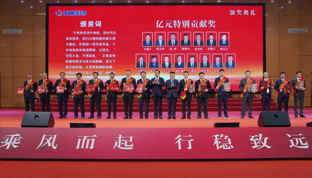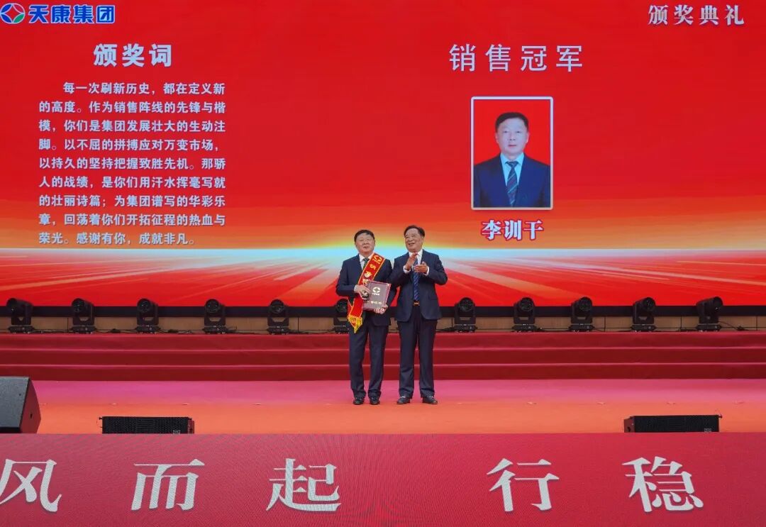 会议同时为销售冠、亚、季军,亿元特别贡献奖、优秀销售经理、先进销售经理、销售新星、行业销售精英、主营单项销售精英、销售业绩重大突破奖、大型客户好评奖、国外市场拓展先进奖、新产品引进贡献奖、执着奉献奖、先进集体、天康工匠、先进生产工作者等颁奖。