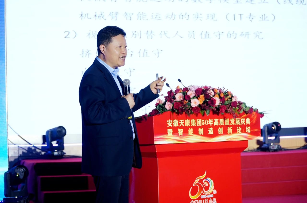 安徽天康集团党委书记、董事长赵宽出席论坛。集团党委副书记、总经理毛文章代表安徽天康集团致欢迎词。毛总表示,智能制造作为当今工业发展的核心引擎,正在深刻地改变着制造业的生产方式和竞争格局。安徽天康集团作为一家主营产品涉及仪器仪表、光电缆、医疗医药、智能电气等跨行业、多元化的集团公司,一直积极响应国家创新驱动发展战略,努力致力于在智能制造领域不断探索和突破。值此安徽天康集团建厂50周年之际,有幸邀请到各位领导、专家莅临天康出席论坛,这是一次千载难逢的机会,天康感到无比荣幸。安徽天康集团一定加倍珍惜、努力学习,持续发展,争创佳绩,为推动智能制造高质量发展贡献自己的力量。14.jpg