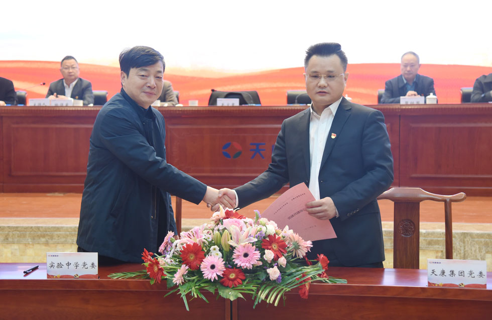 为实施校企党建共建共享,携手共赢。11月13日上午,安徽天康集团党委与天长市实验中学党委在集团会议中心隆重举行“党建共建结对”仪式,拉开了校企之间党建共建的帷幕,齐心构建“资源共享、优势互补、互相促进、共同提高”的党建工作新格局。安徽天康集团党委副书记、总经理毛文章,天长市实验中学党委副书记、校长冯广礼出席仪式。安徽天康集团党委委员、副总经理张祖国,党委委员、副总经理柏保东,党委委员、纪委书记、工会主席于正江,天长市实验中学党委委员、副校长袁福泉,党委委员、副校长王月江,党委委员、副校长丁峰,党委委员、工会主席、教科室主任褚宏彪,党委委员、团委书记周宏林及双方主要部门负责同志,集团党委各支委委员、党员代表参加了仪式。柏保东主持仪式。